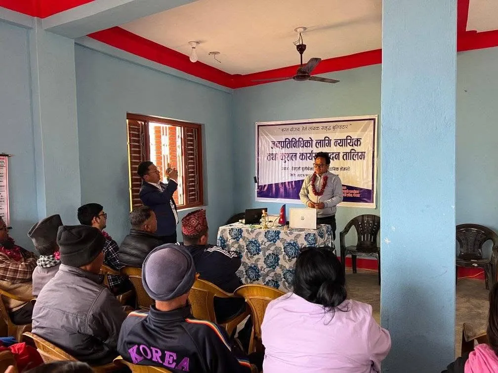गाउँपालिका अध्यक्ष दिपेन्द्र सुनारीको प्रमुख आतिथ्यतामा उद्घाटन भएको यस तालिममा उपाध्यक्ष, वडा अध्यक्षहरू तथा अन्य जनप्रतिनिधिहरूको उत्साहजनकउपस्थिति रहेको छ ।