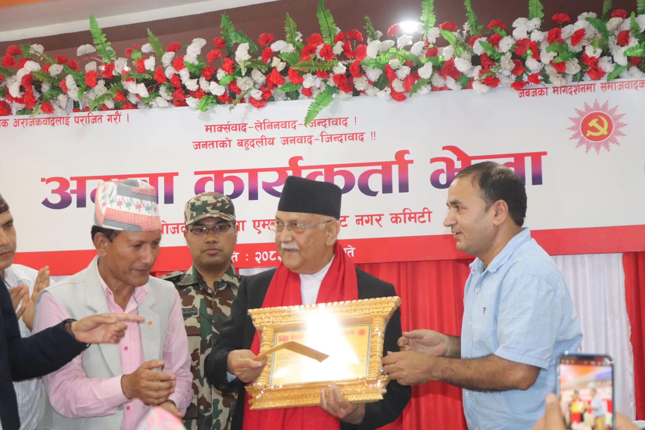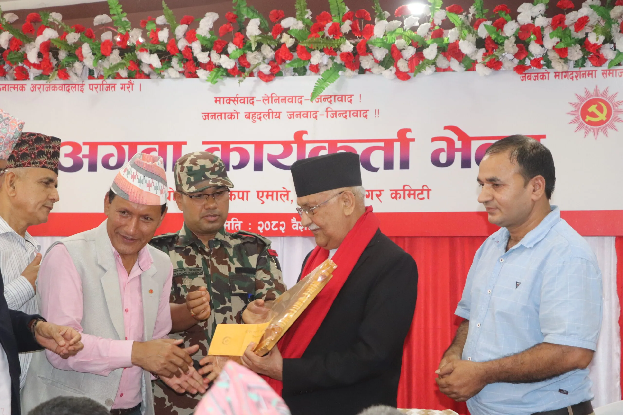 उहाँले नेपालमा नेकपा एमाले राष्ट्रिय शक्ति भएकोले नेकपा एमाले मात्र नभएको भए देश ठुलो दुर्धटनामा जाने बताउदै आन्तरिक कलहबाट टाढा रहेर पार्टी निर्माणमा लाग्न कार्यकर्तालाई निर्देशन समेत दिनु भयो । उहाँले पाँच पाँच वर्षमा आवधिक निर्वाचन हुने भएपनी सुखी नेपाली, समृद्ध नेपाल निर्माणलाई पुरा गर्न २०८४ को निर्वाचनमा एमाले धेरै सिटमा जित्नुपर्ने भएकोले मिसन ८४ केन्द्रित गरेर संगठन निर्माणका गतिविधि संचालन गरेको बताउदै जरा अभियान नेताहरुको बीचमा मात्र सिमित नराखी वडा र टोल कमिटि सम्म लैजान आग्रह गर्नुभयो ।