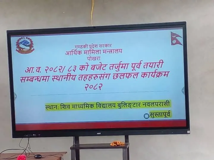 बुलिङटार १६ चैत । बुलिङटार गाउँपालिकाको निमन्त्रणामा गण्डकी प्रदेश आर्थिक मामिला मन्त्रालयद्वारा आयोजना गरिएको आ.ब. २०८२/०८३ को बजेट तर्जुमा पूर्वतयारी सम्बन्धी स्थानीय तहहरूसँगको छलफल कार्यक्रम नवलपुर जिल्लाको बुलिङ्टार गाउँपालिका–६ स्थित शिव माध्यमिक विद्यालयको सभाहलमा भव्य रूपमा सम्पन्न भएको छ ।