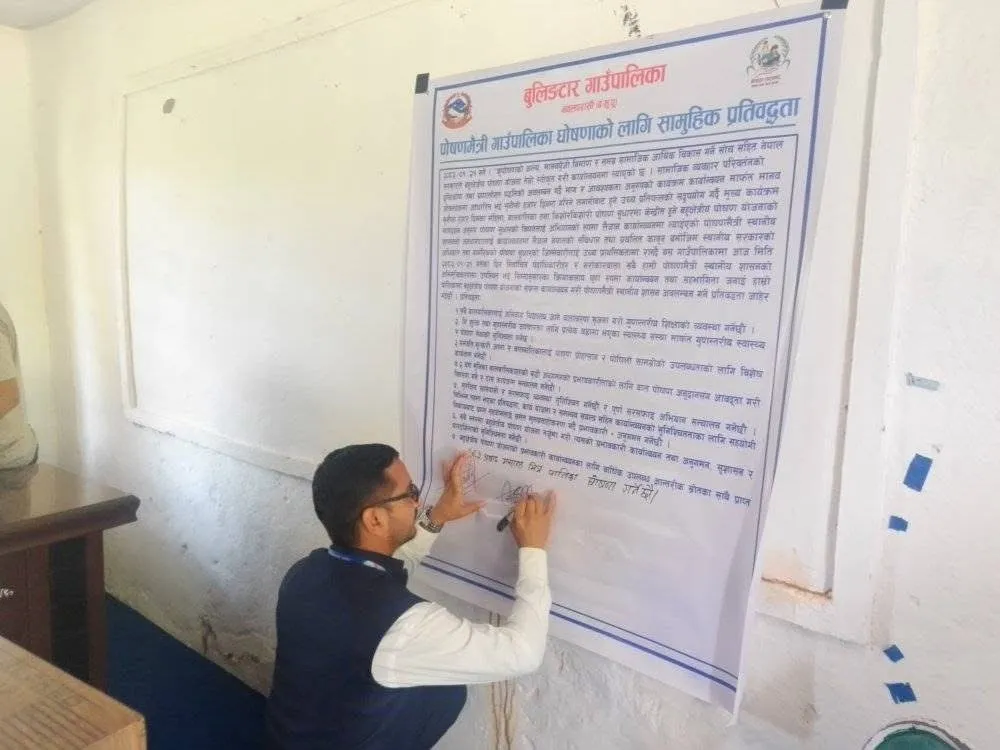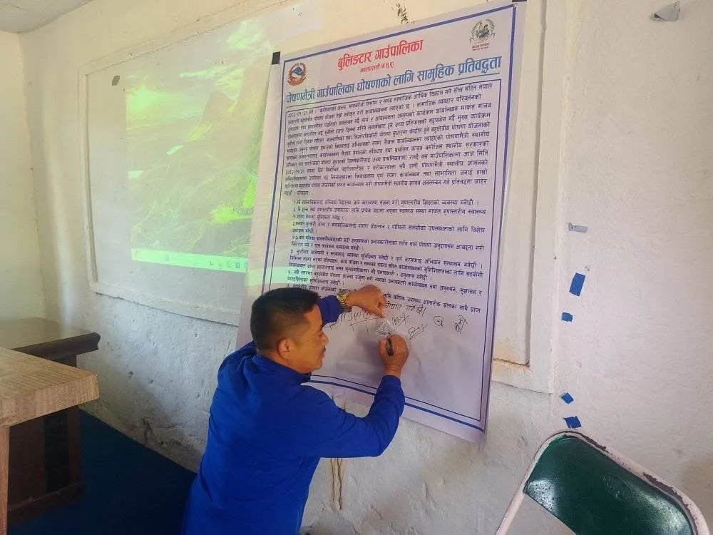 कार्यक्रमको मुख्य उद्देश्य स्थानीय तहमा पोषणमैत्री वातावरण सिर्जना गर्दै आवश्यक सूचकहरू पूरा गरी विक्रम संवत २०८३ असार मसान्तभित्र बुलिङटारलाई पोषणमैत्री गाउँपालिका घोषणा गर्नु रहेको छ । यसै सन्दर्भमा कार्यक्रमको अन्त्यमा सहभागी सबै जनप्रतिनिधिहरू र कर्मचारीहरूले सामूहिक रूपमा प्रतिबद्धता पत्रमा हस्ताक्षर गरी पोषणमैत्री घोषणा प्रक्रियामा सक्रिय सहभागी हुने अठोट व्यक्त गर्नुभयो ।