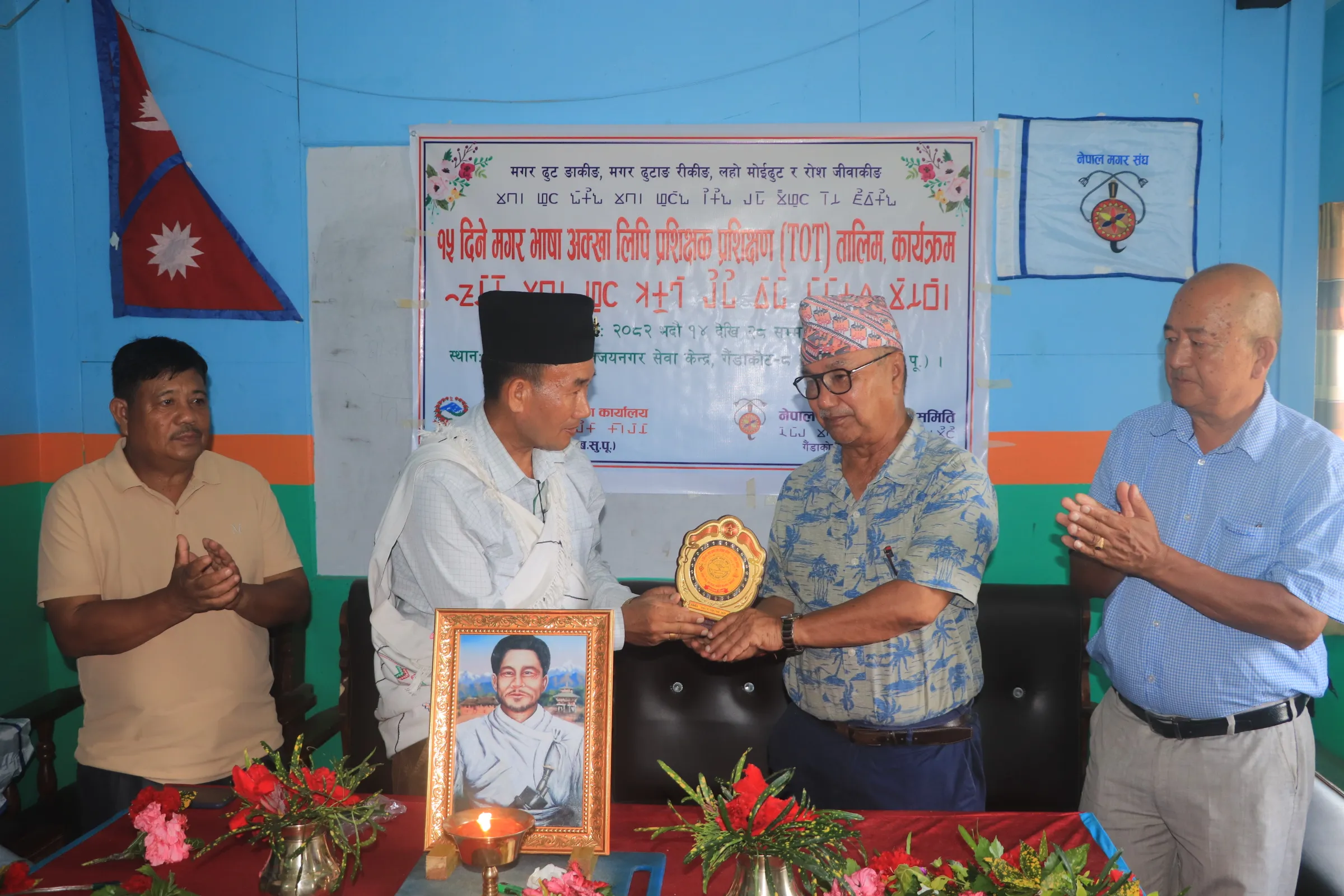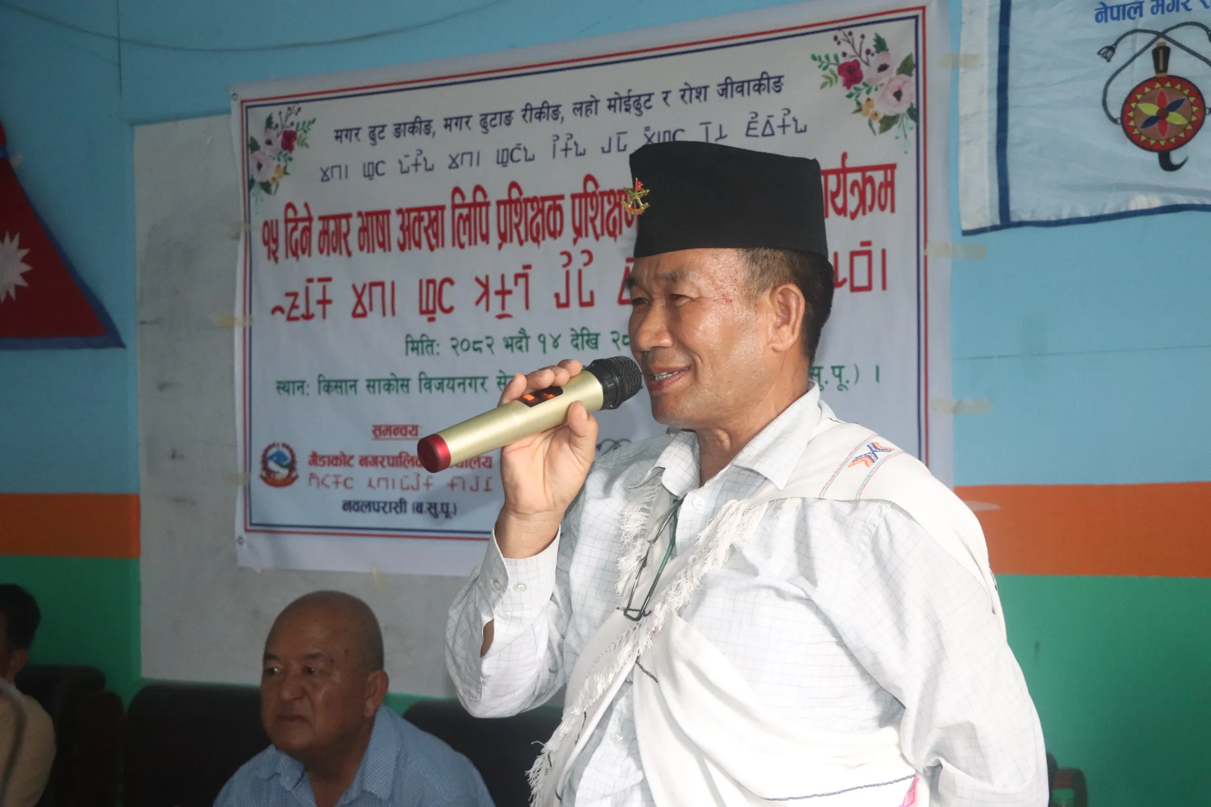 गैडाकोट १५ भदौ । गैडाकोटमा १५ दिने मगर भाषा अक्खा लिपि प्रशिक्षक, प्रशिक्षण (TOT) तालिम कार्यक्रम हिजो बाट सुरु भएको छ ।