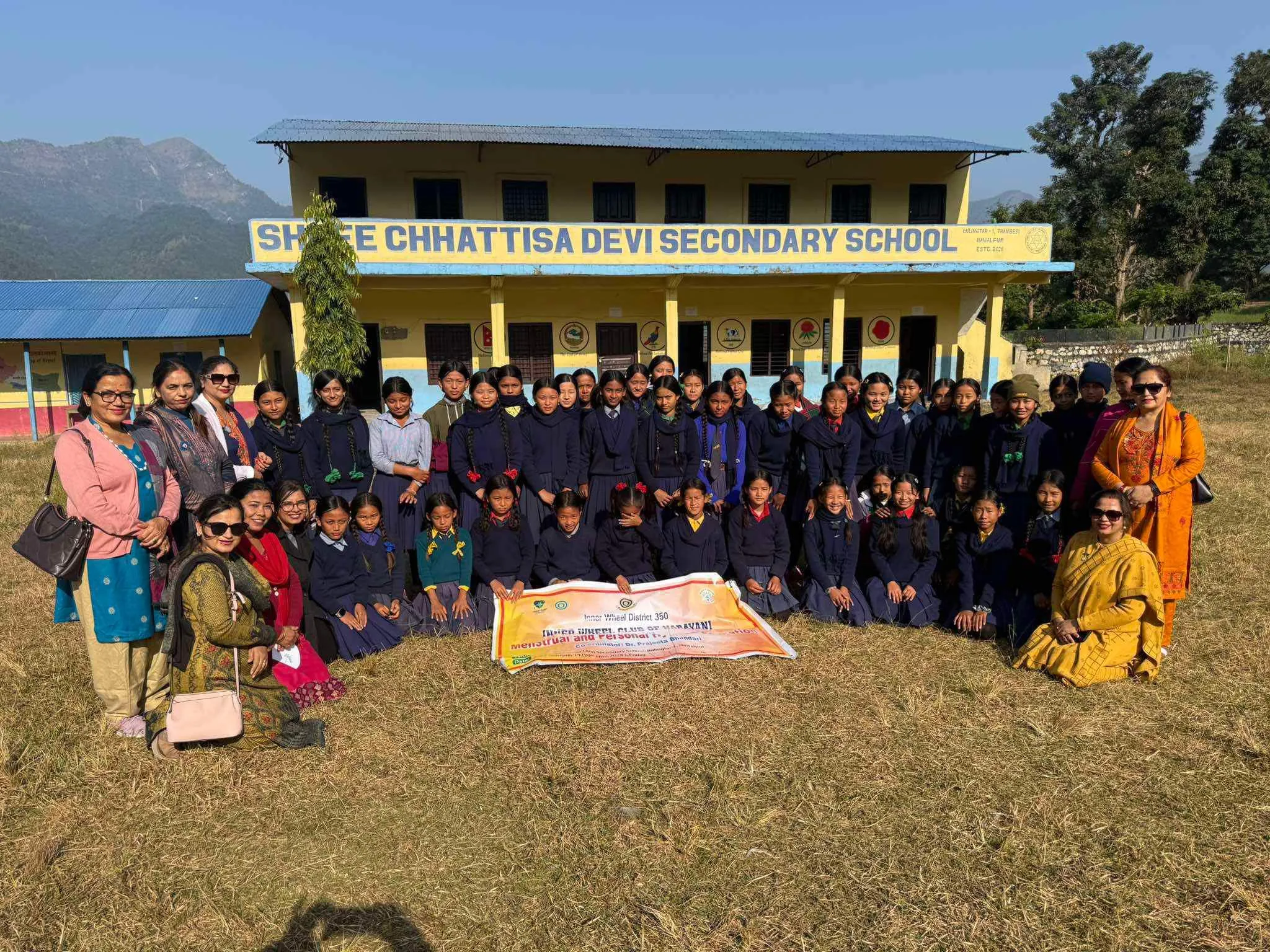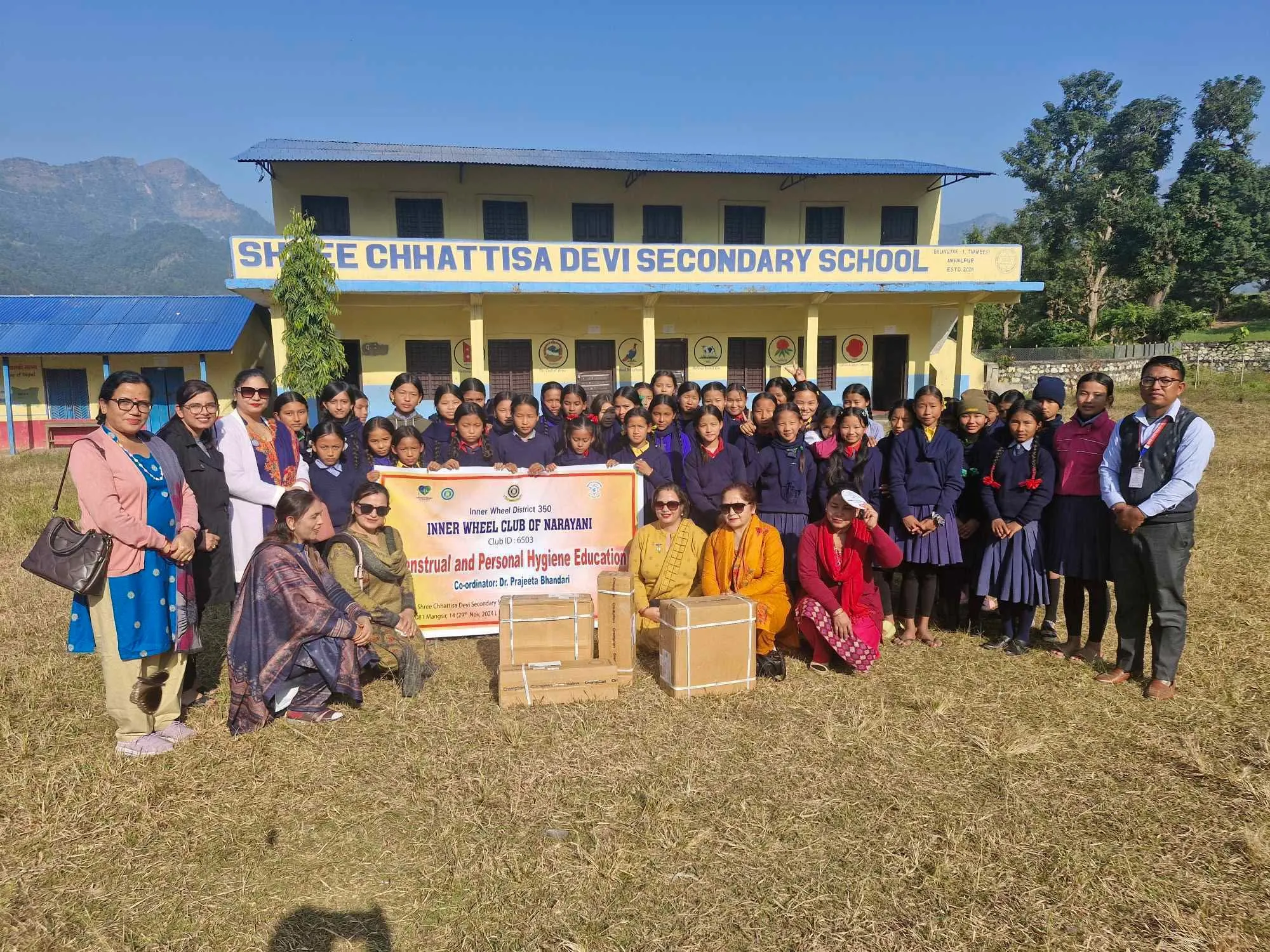 ईनरह्विल क्लव अफ नारायणीका सदस्य डा.प्रजिता भण्डारीको सहजीकरणमा श्री छत्तीसा देवी माध्यमिक विद्यालय, बुलिङटार-१ थमबेसीमा कक्षा ६ देखि १० सम्मका छात्राहरुका लागि महिनावारी तथा व्यक्तिगत सरसफाइ सम्बन्धी सचेतनामूलक कार्यक्रम सम्पन्न भयो ।