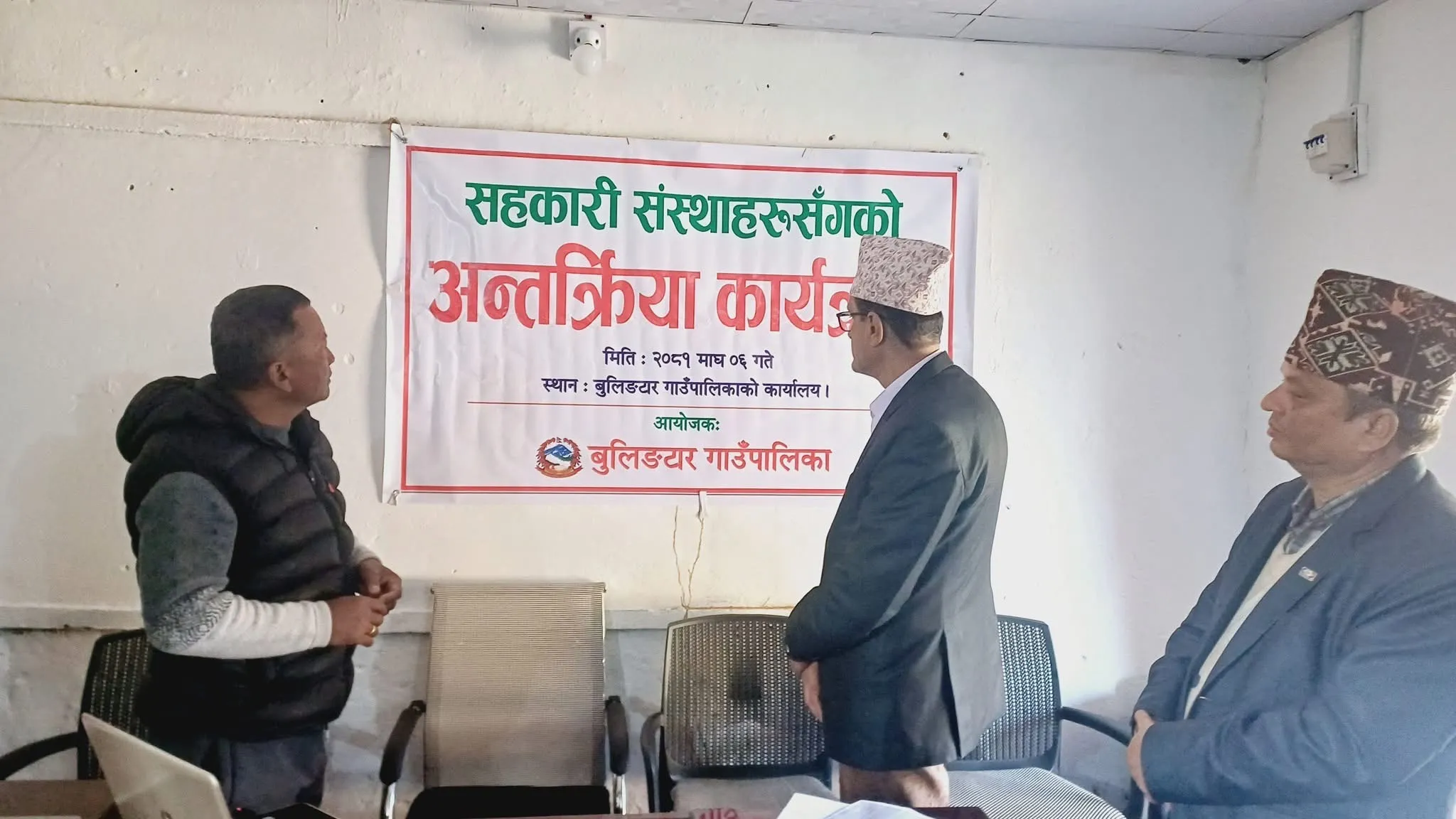 बुलिङटार ७ माघ । बुलिङटार गाउँपालिको आयोजनामा यस पालिका अन्तर्गत रहेका सम्पुर्ण सहकारी संस्थाहरु सगँको अन्तर्क्रिया कार्यक्रम मिति २०८१ माघ ६ गते वडा नं. ३ को सभाहलमा वडा नं. ३ वडा अध्यक्ष श्रि विष्णु विर जर्घा मगर ज्यु को अध्यक्षता तथा जिल्ला सहकारी संघ नवलपुरका अध्यक्ष तिलक प्रसादपराजुली ज्यू, उपाध्यक्ष तुल माणि पौडेल ज्यू, सचिव श्याम सुन्दर लामिछाने ज्यू को आतिथ्यतामा सम्पन्न भयो ।