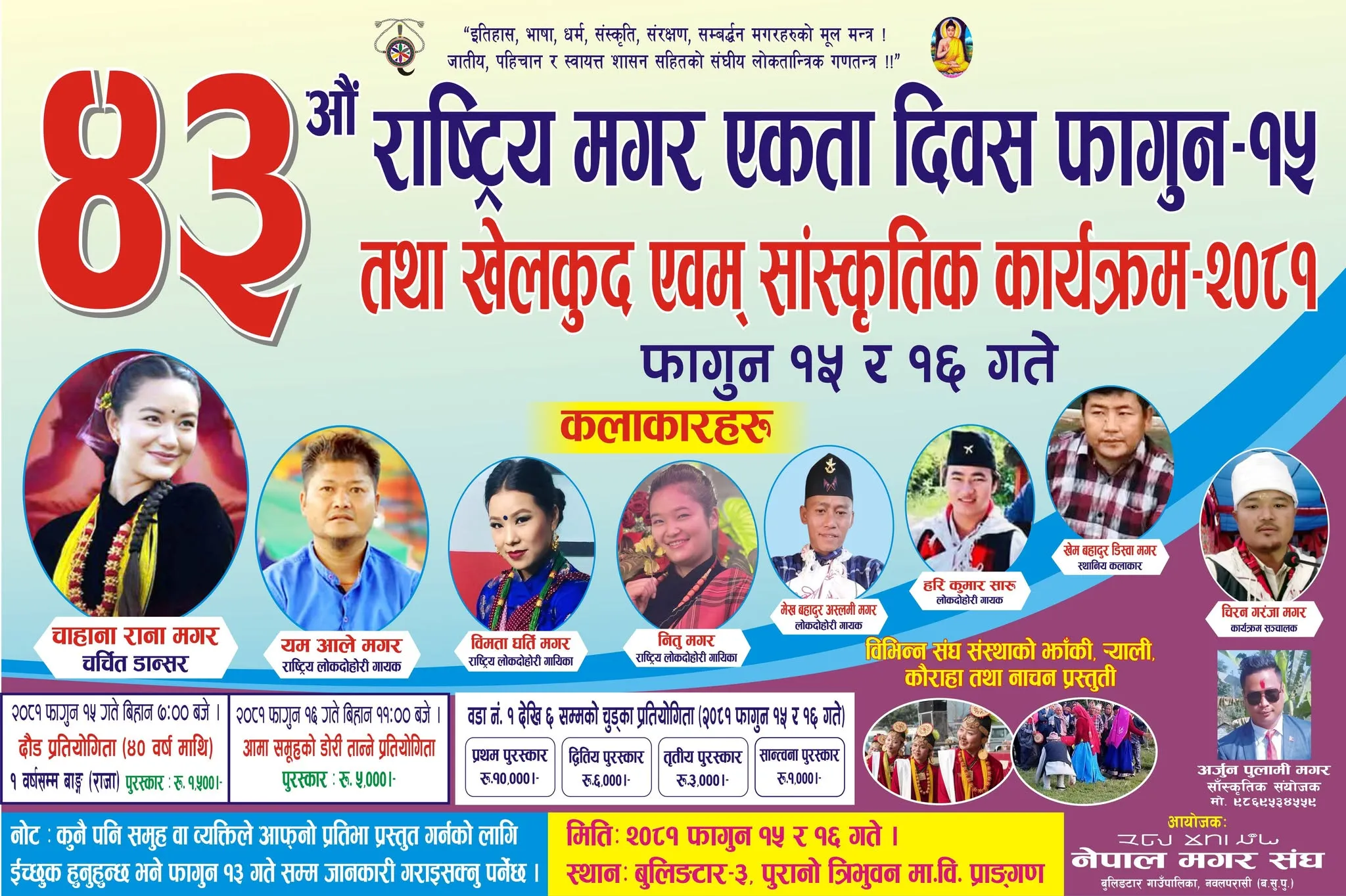 बुलिङटारमा ४३औं राष्ट्रिय मगर एकाता दिवस तथा खेलकुद एवम् सास्कृतिक कार्यक्रम – २०८१ फागुन १५ र १६ दुई दिन मनाउने