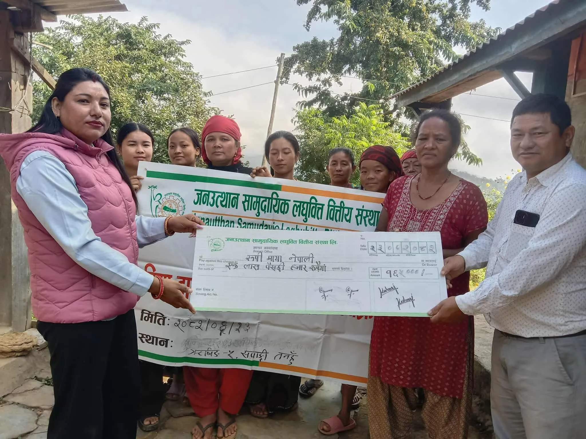 जनउत्थान सामुदायिक लघुबित्त वितीय संस्था लि. शाखा कार्यालय बुलिङ्टारमा ऋणको बिमाको दाबिबाट ऋण चुक्ता तथा काज क्रिया खर्च चेक बाट हस्तान्तरण