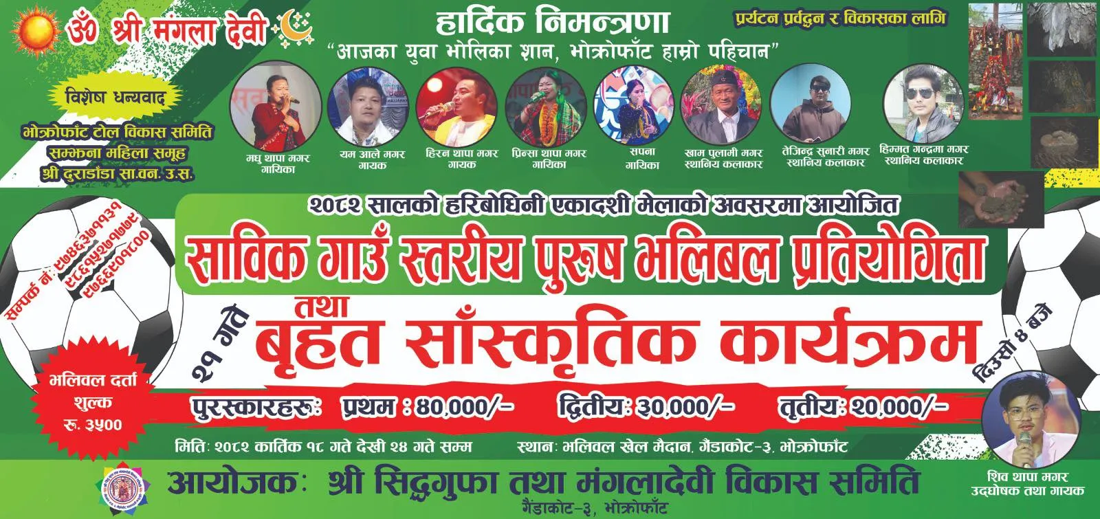 भोंक्रोफाँटमा २०८२ सालको हरिबोधिनी एकादशी मेलाको अवसरमा आयोजित साविक गाउँ स्तरीय पुरुष भलिबल प्रतियोगिता तथा बृहत साँस्कृतिक कार्यक्रम-२०८२ हुने