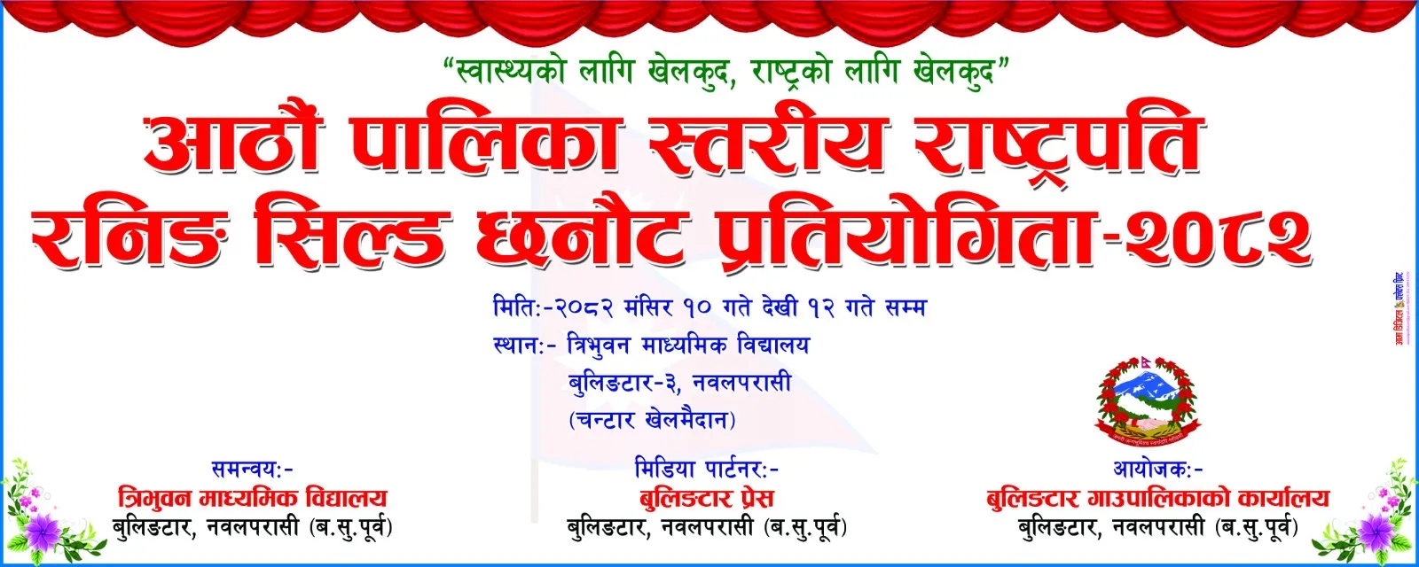 बुलिङटारमा आठौं पालिका स्तरीय राष्ट्रपति रनिङ शिल्ड छनौट प्रतियोगिता -२०८२ हुने