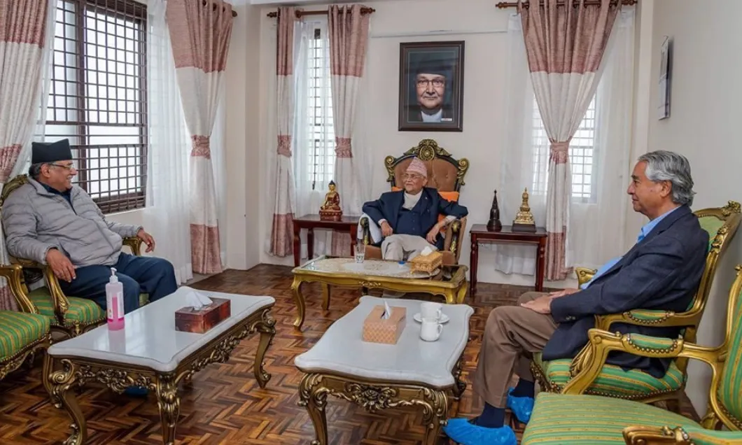 प्रधानमन्त्री ओलीसँग कांग्रेस सभापति शेरबहादुर देउवा र प्रमुख प्रतिपक्ष दलका नेता तथा माओवादी केन्द्रका अध्यक्ष पुष्पकमल प्रचण्डले भेटवार्ता