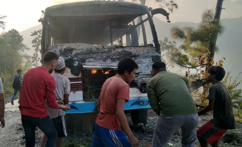 हलेसी तुवाचुङ नगरपालिका बाहुनीडाँडास्थित कदुवा नजिकैको घुम्तीमा गुडिरहेको बसमा आगलागी