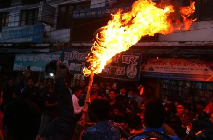 माओवादी निकट अखिल क्रान्तिकारीका विद्यार्थीले राष्ट्रपतिको पुतला जलाए